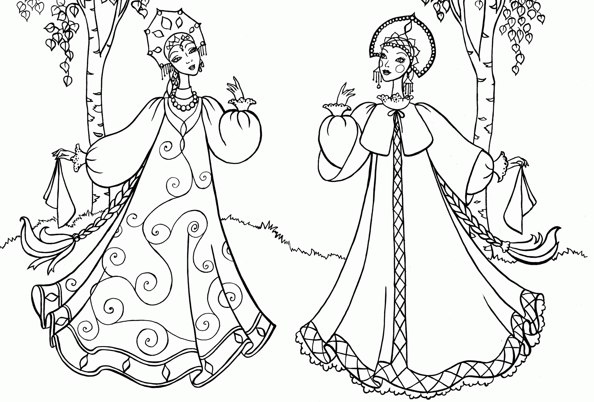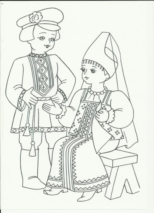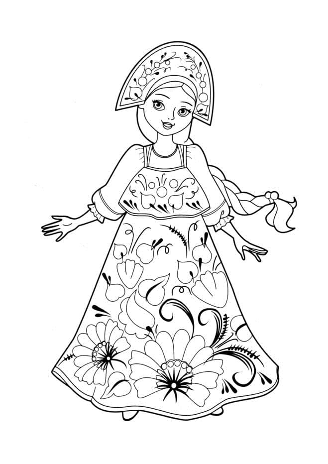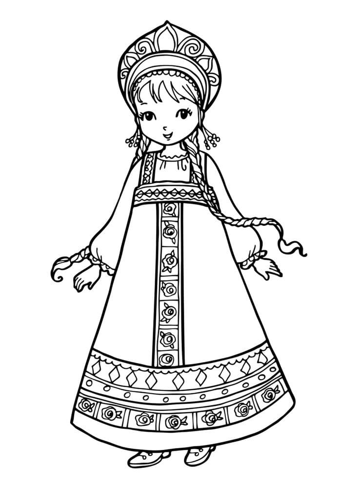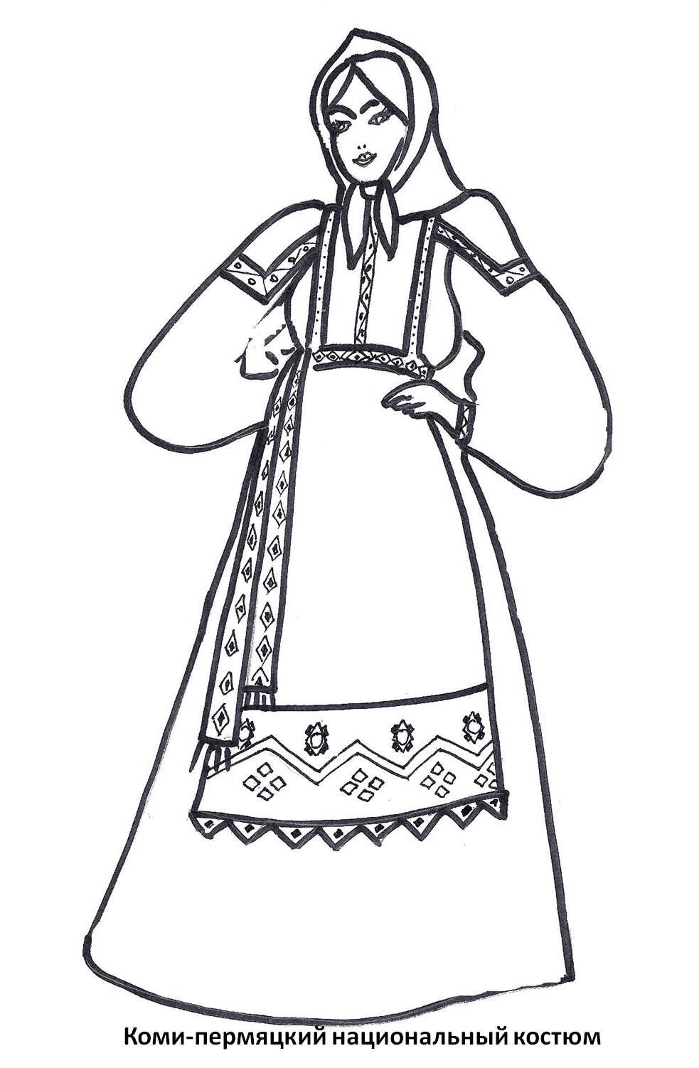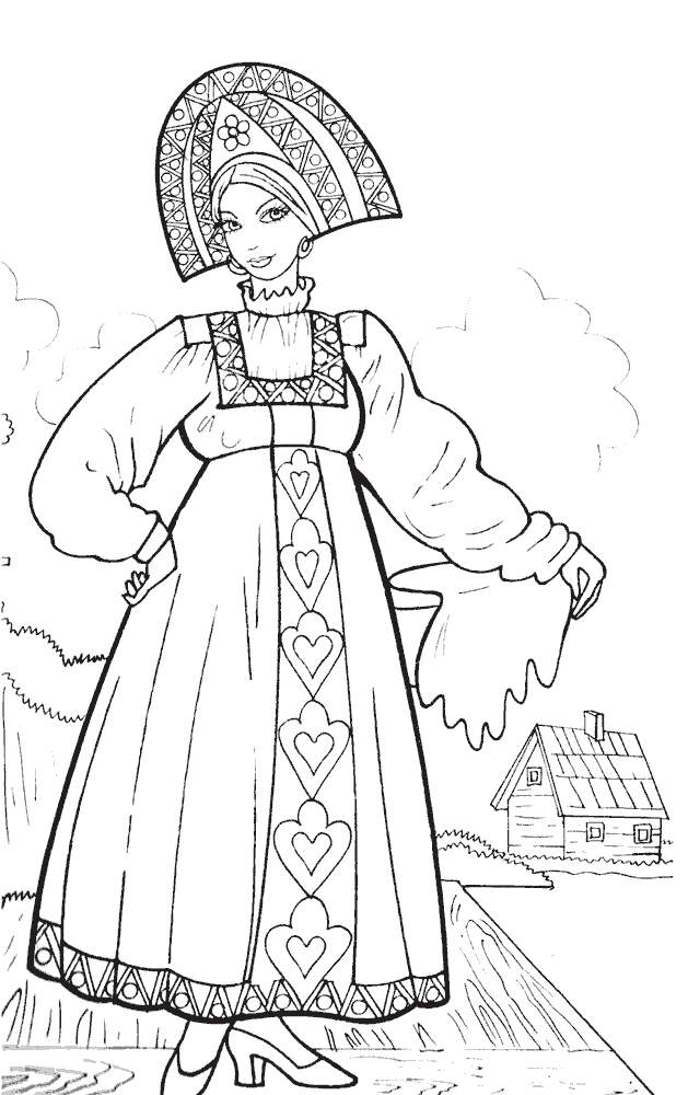 Любую раскраску можно распечатать бесплатно "Раскраска Русский народный костюм". Категория: