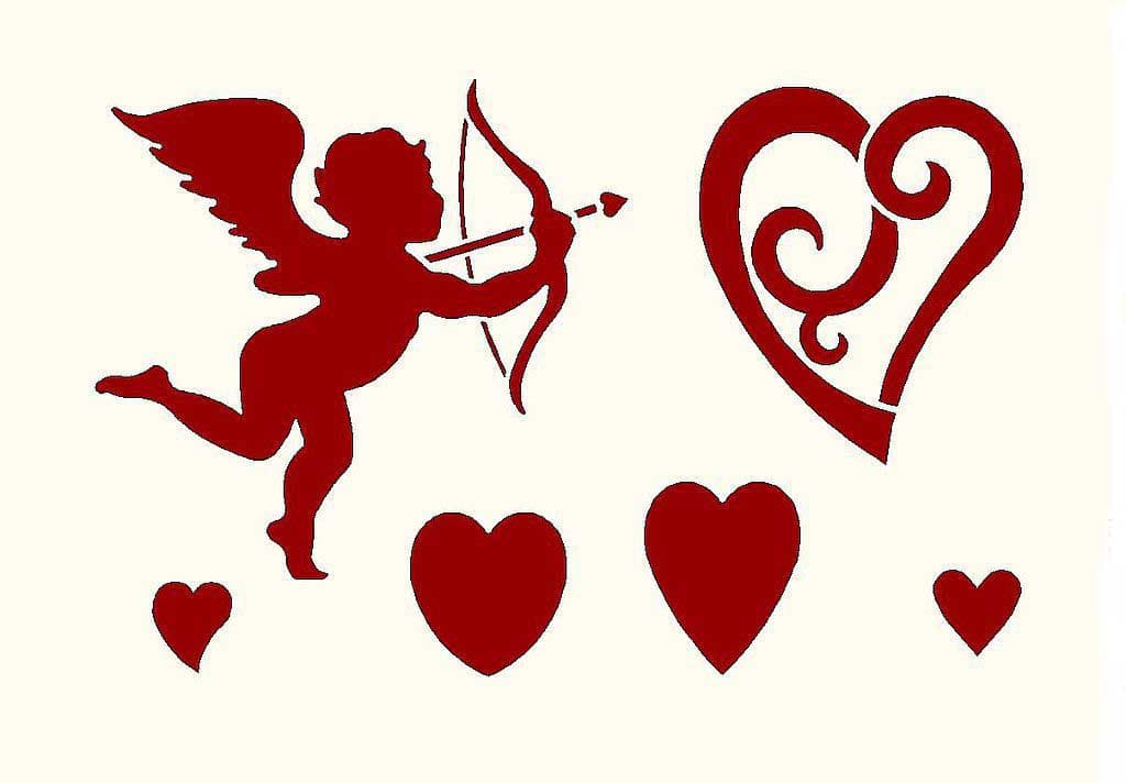 Сердце в основном ассоциируется с любовью. Нарисованное сердце совсем не похоже на настоящее сердце человека. Такое сердце может подойти для украшения торта, баннера, аппликации или стенда, так же его можно использовать на день влюбленных или как его называют день Святого Валентина. Одной из популярных трафаретов данного раздела являются два сердца, которые пронизывает стрела Амура. На нашем сайте Вы совершенно бесплатно можете скачать и распечатать шаблон и трафарет сердца.